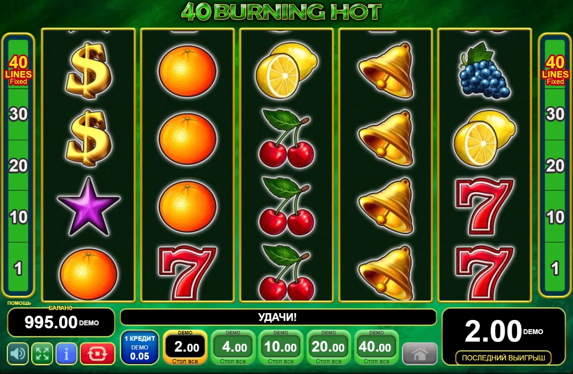 - диапазон ставок - от 1 до 200 кредитов на каждую активную линию;