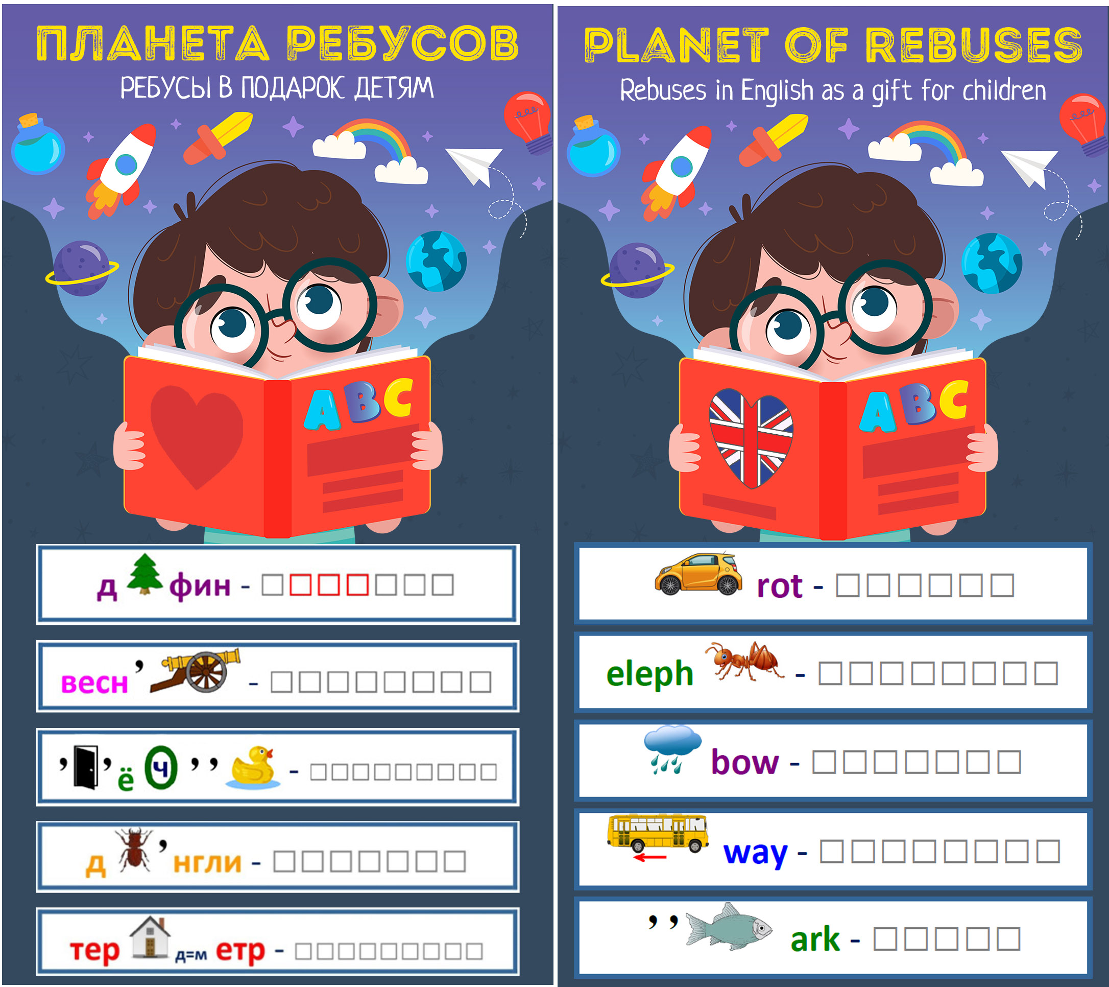 Если же привлекается иностранный язык, задача несколько усложняется. Английский — один из самых востребованных диалектов. Чтобы выучить его, выйти на высокий уровень, стоит с детства использовать ребусы. Они помогают детям запоминать как можно больше слов на английском, расширять словарный запас.